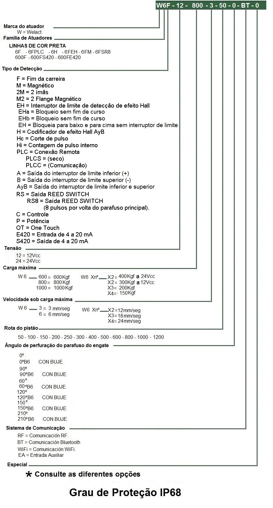 de 10%, eles podem ser encomendados com finais de curso elétrico W6F, com potenciômetro W600, encoderde efeito Hall A e B W6H, saída de Reed Switch W6RS, anti-rotação da haste,