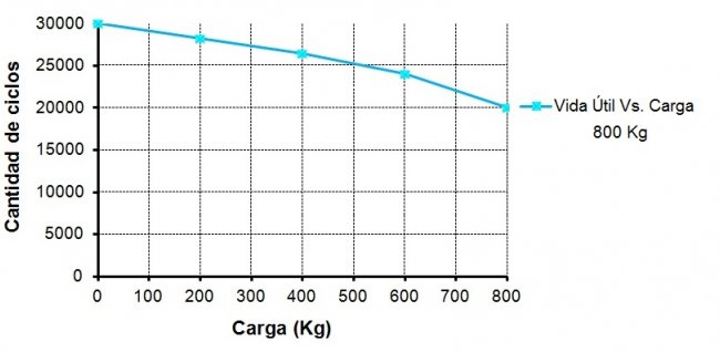 contra agentes químicos (hidrocarbonetos, fertilizantes), alta variedade de cursos de até 1000mm. com um ciclo de trabalho de 10% trabalhando a 600kg e 5% trabalhando a 800kg .